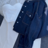 ✨ 3-Piece Set – High-waist trousers, crop top & denim shirt jacket