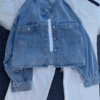 πŸ§₯ Layer: Light blue denim shirt jacket with button closure