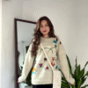 The soft cream-colored sweater is beautifully adorned with delicate embroidered details featuring nature-inspired motifs like flowers, mushrooms, and charming woodland elements. Each stitch adds a unique story, giving the sweater a nostalgic, handmade appeal. Itβs not just clothing β itβs an expression of coziness, creativity, and seasonal charm. πΈππ¦