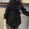 Beneath the coat lies the eternal power of black β a fitted dress that embraces minimalism while exuding allure. The dress, cinched at the waist with a sleek belt featuring a golden buckle, adds a touch of glamour and strength to the look. π€β¨ The golden accent elevates the dark base, creating a balance between subtle sophistication and radiant detail.