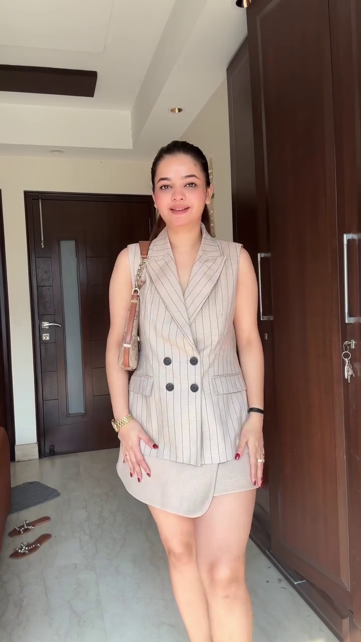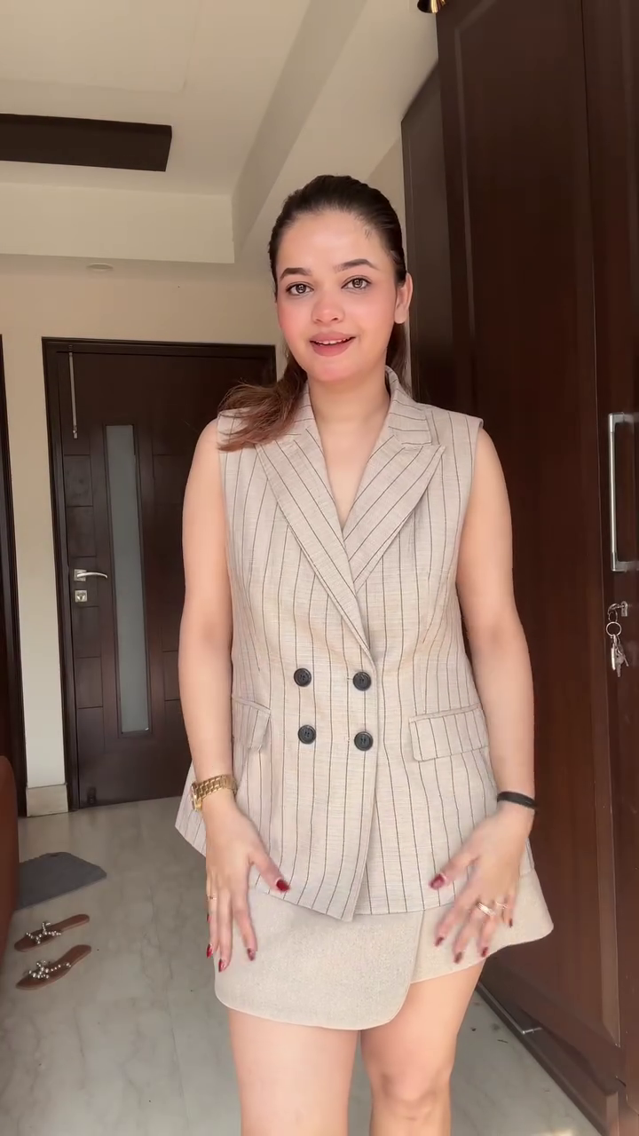 Beige Sleeveless Blazer Co-Ord Dress for Women – Smart Casual & Party Wear