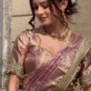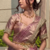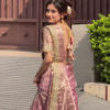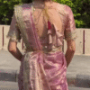 The fluid drape of the silk ensures both comfort and poise, making it ideal for weddings, festive celebrations, engagement ceremonies, and traditional gatherings. Subtle woven motifs across the fabric add dimension without overpowering the softness of the pink base.