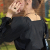 The black blouse features a structured square neckline that adds a contemporary touch while maintaining a polished silhouette. The full sleeves create balance and sophistication, making it both versatile and flattering. Its minimal design allows the rich textures and accessories to stand out, offering endless styling possibilities.