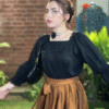 Timeless, confident, and effortlessly chic, this Classic Black Blouse paired with a Cinnamon High-Waisted Skirt is the epitome of modern elegance. Designed for women who appreciate refined simplicity with a bold edge, this ensemble transitions seamlessly from day to evening.
