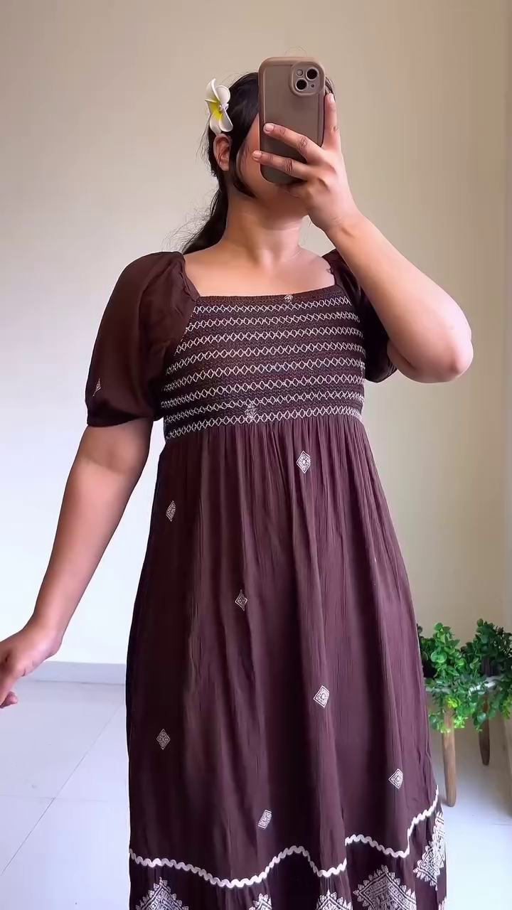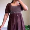 Elevate your everyday style with the Cocoa Charm Smocked Midi Dress — a perfect blend of comfort, elegance, and effortless femininity. Designed in a rich cocoa brown shade, this dress brings warmth and sophistication to your wardrobe while remaining light and breathable for all-day wear.