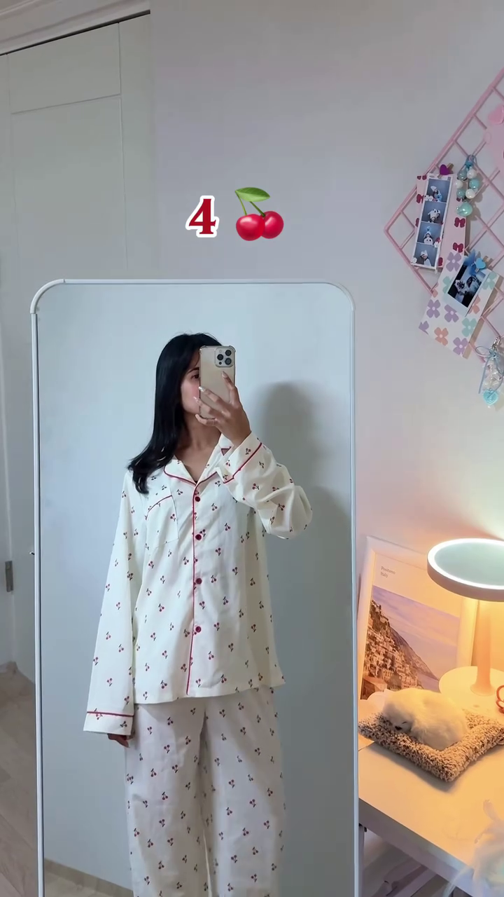 Made from soft and breathable fabric, it ensures a cozy and comfortable feel. The playful cherry print gives it a youthful and trendy vibe, making it different from regular nightwear.