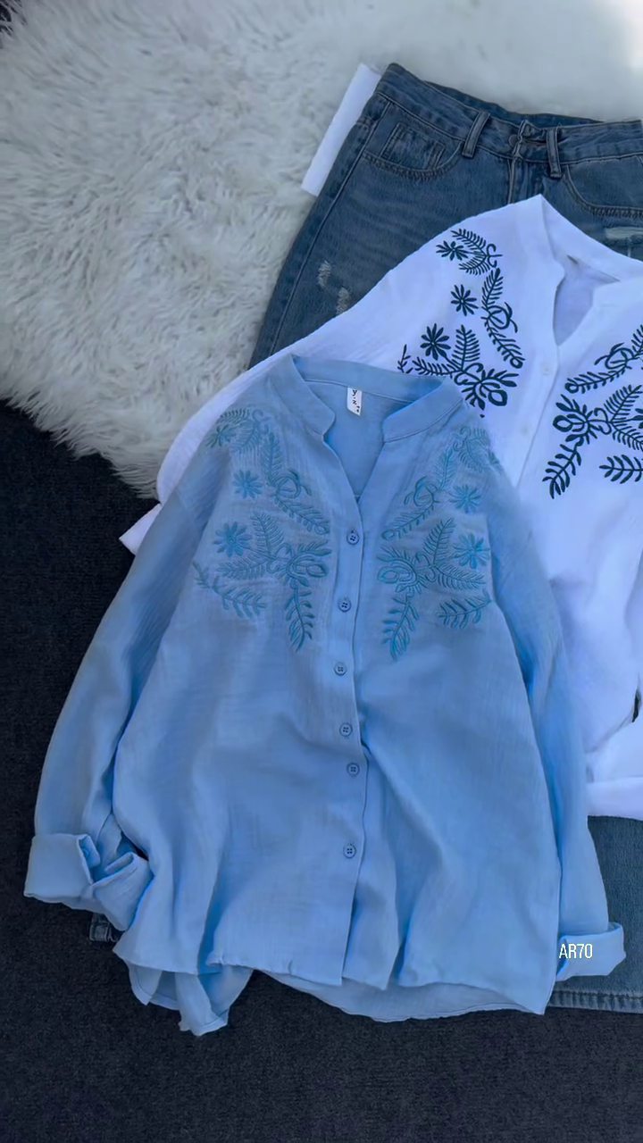 Upgrade your everyday fashion with this Elegant Embroidered Casual Shirt, available in soothing blue and classic white tones. This shirt is designed for women who love minimal yet stylish outfits that can be worn anywhere.