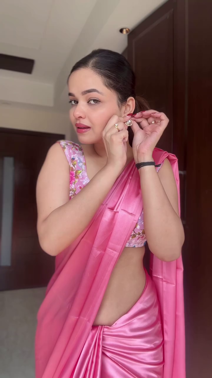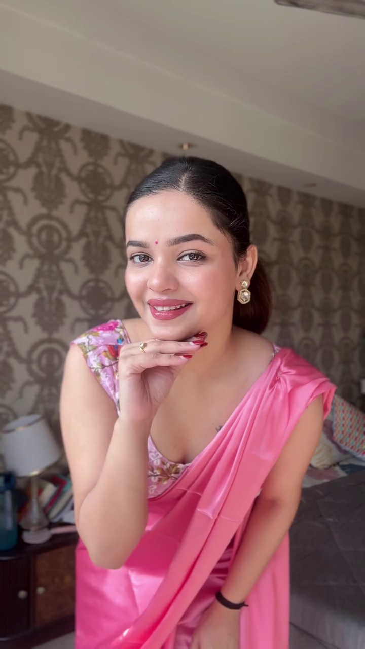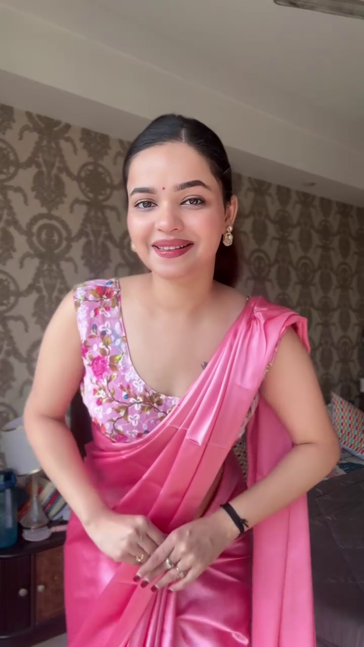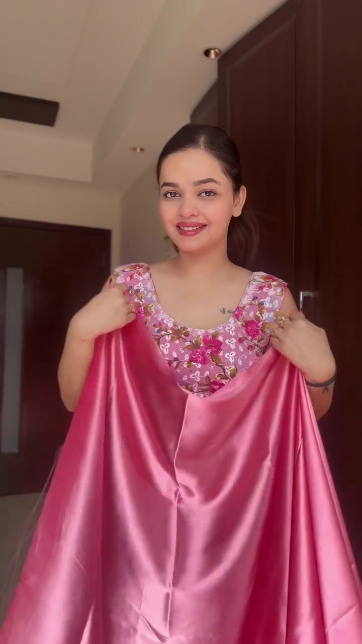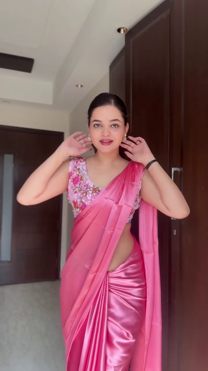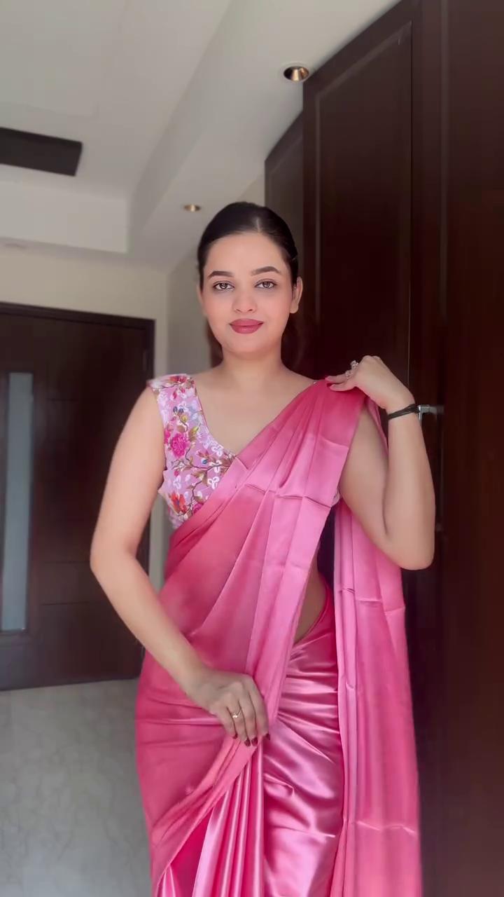 This pink satin saree is easy to style—pair it with heels, a clutch, and delicate jewelry for a refined party look, or opt for statement earrings to enhance festive appeal. Its versatile design allows it to be worn at weddings, receptions, festivals, or formal celebrations.