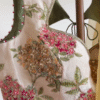 The saree is adorned with delicate floral embroidery scattered across the fabric, adding a subtle yet luxurious touch to the design. The beautifully finished border enhances the overall elegance while maintaining a refined and sophisticated look. The matching floral embroidered blouse complements the saree perfectly, adding depth and richness to the outfit.