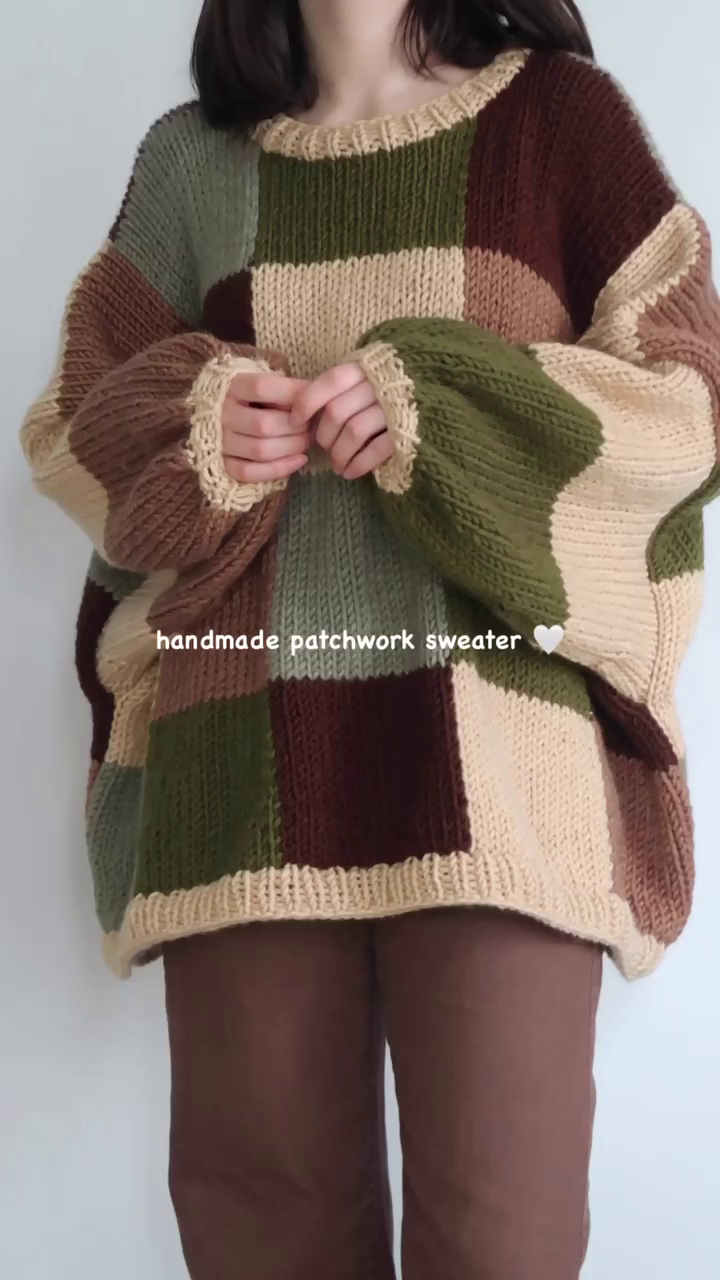 Handmade patchwork sweater crafted from soft wool blend. Cozy, artsy & perfect for work or casual winter days 🧶💖