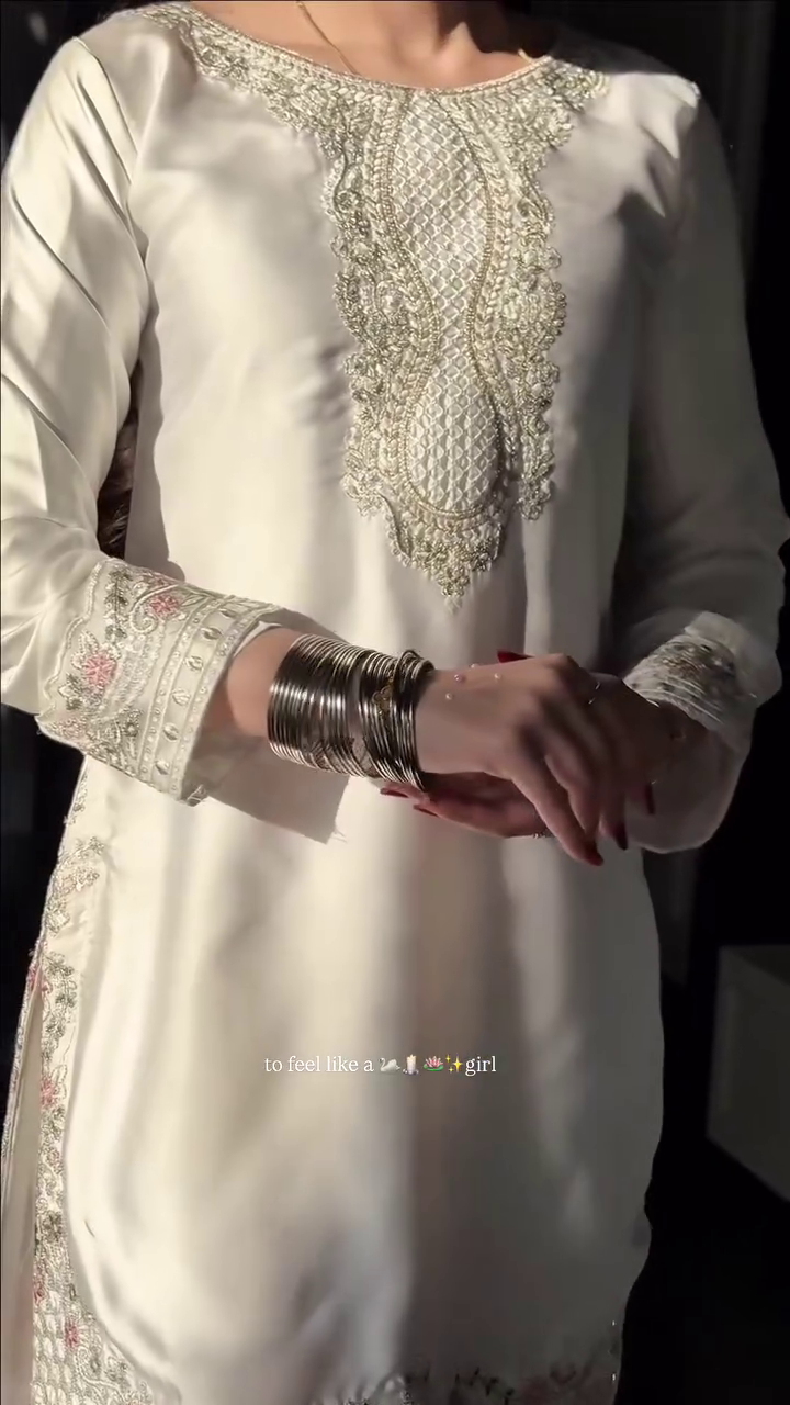 Step into timeless elegance with our Ivory Bloom Embroidered Kurta Set — a graceful ensemble designed to make you feel effortlessly beautiful. Crafted in a soft ivory hue, this set blends delicate embroidery with subtle floral prints for a look that is both refined and feminine.