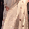 Completing the set is a sheer dupatta with delicate floral motifs and an elegant embroidered border, adding a light, dreamy finish to the look. The airy, comfortable fabric ensures ease of movement, making it perfect for festive gatherings, daytime celebrations, intimate functions, or special occasions.