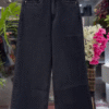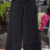 Paired with high-waisted black wide-leg denim, the look achieves the perfect balance between dressy and relaxed. The structured denim grounds the softness of the top, creating a flattering and fashion-forward silhouette. The cropped wide-leg cut elongates the frame and adds a trendy, effortless vibe.