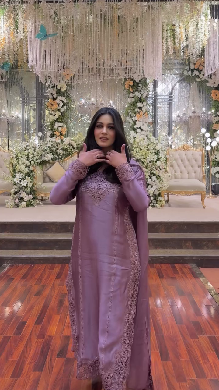 Graceful, refined, and undeniably regal, this lavender embroidered suit is designed to make a lasting impression at any grand celebration. Crafted in a rich, smooth fabric with a soft sheen, the ensemble exudes understated luxury while maintaining timeless appeal.