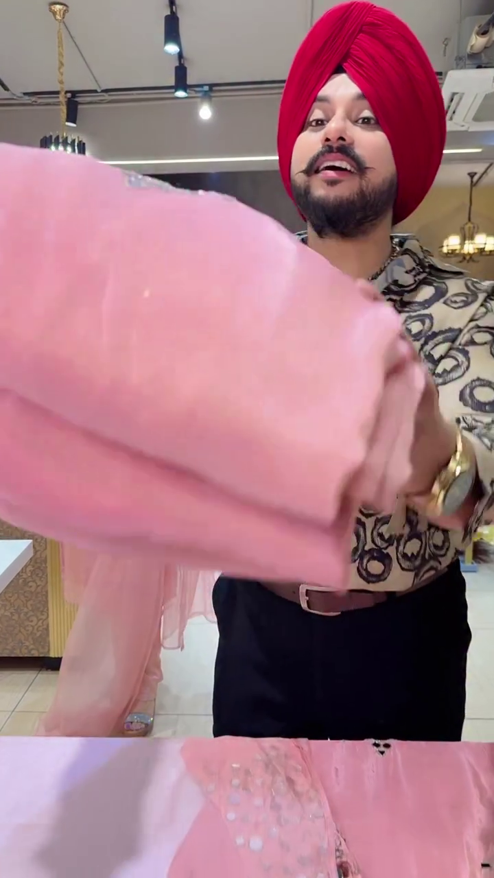 “Subtle shimmer, major glam ✨💕 Pastel pink silk suit with stunning mirror work on the neck & sleeves — the perfect festive glow-up 💗 Chic, elegant & absolutely party-ready 💫 Comment ‘PINK’ for the link to shop this classy piece 🌸”