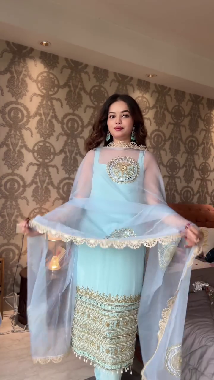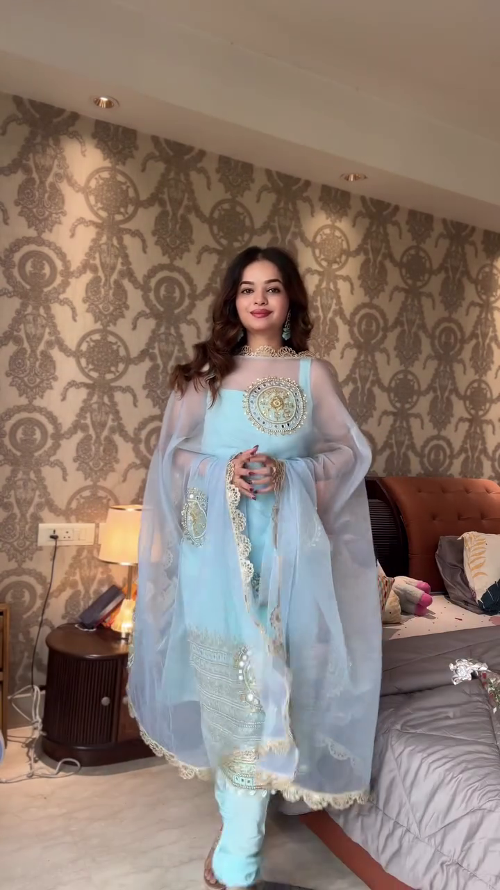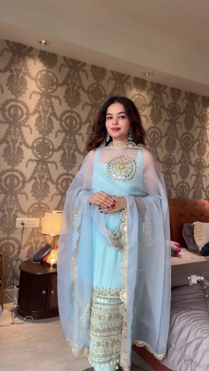 Perfect for women who love subtle luxury and ethnic charm, this sky blue suit set blends comfort, elegance, and festive appeal beautifully.