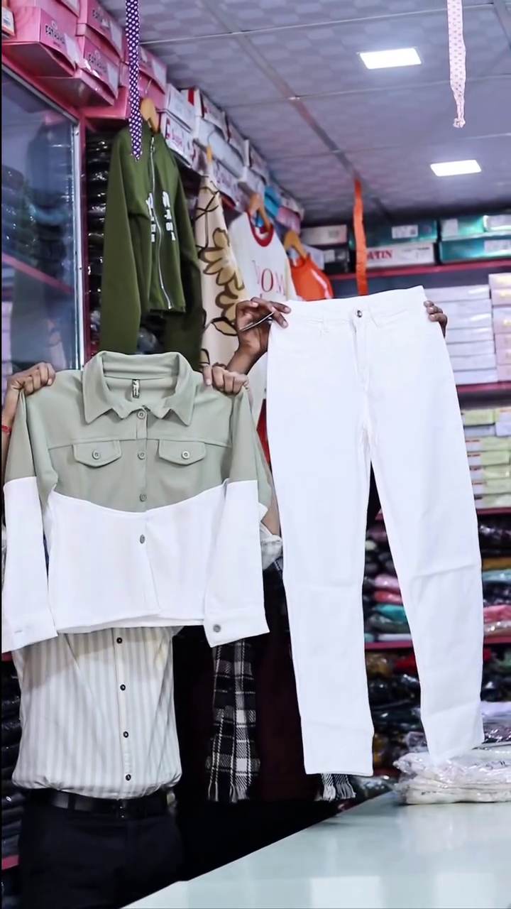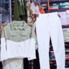 This stylish olive and white color-block jacket set is a perfect pick for women who love modern, clean, and fashionable outfits. The combo features a smart cropped jacket in a soothing olive green and white contrast, paired with classic white slim-fit jeans. Together, they create a fresh and trendy look that works effortlessly for casual outings and everyday styling.