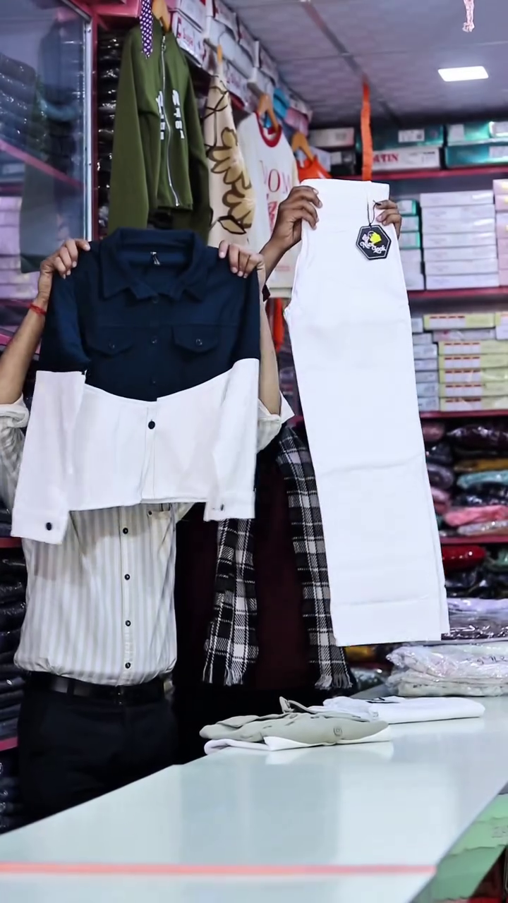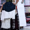 The white jeans included in the set offer a clean and polished finish. Designed with a comfortable fit and soft fabric, they are easy to wear throughout the day. The neutral white shade balances the jacket’s color-block design and allows easy styling with other tops as well.