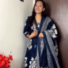 The true highlight of this ensemble is its stunning printed dupatta. Designed with contrasting turquoise motifs and a detailed border, it adds movement, color, and festive energy to the outfit. Draped gracefully, it enhances the overall look with a touch of regal flair.