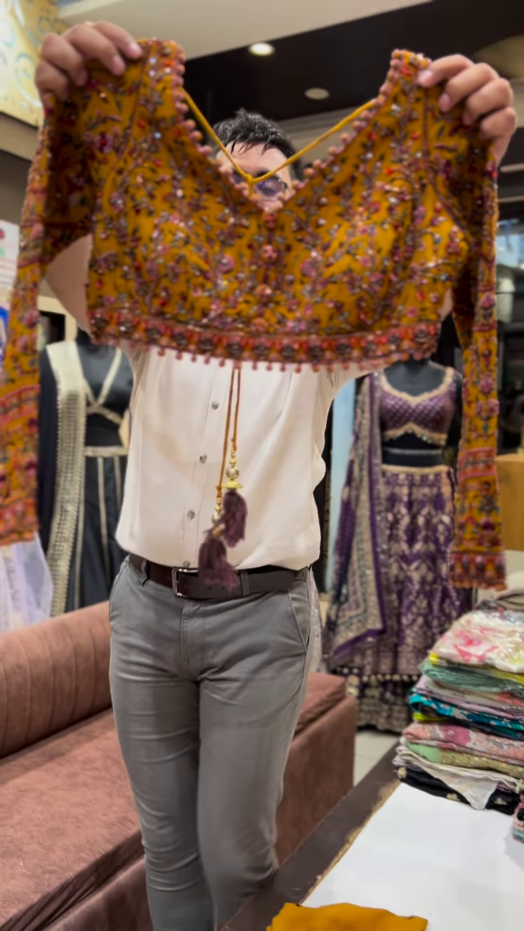 yellow georgette plazzo blouse set with heavy thread embroidery